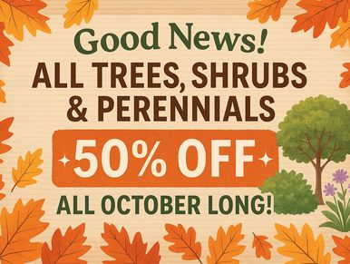 We’re pleased to announce that our 50% Off Sale on all trees, shrubs, and perennials has been extended through the entire month of October.